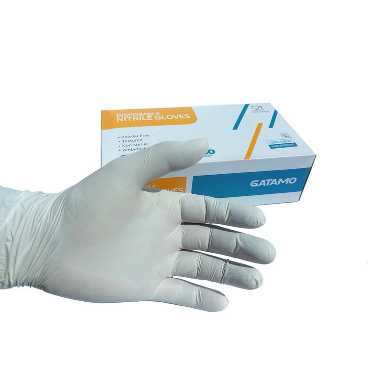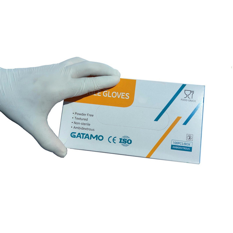 دستکش نیتریل خالص برند گاتامو GATAMOچین با کیفیت عالی دارای استاندارد اتحادیه اروپا CE و رده بندی فود گریدFOOD GRADE قابل استفاده در صنایع غذایی، دارویی، پزشکی، آزمایشگاهی و نوک انگشت آجدار برای جلوگیری از لغزش اشیا هنگام کار با دستکش،دارای کشسانی فوق العاده بدون پودر و بدون بو و حساسیت زایی،امکان استفاده از تاچ اسکرین ها با دستکش، غیر استریل و بافت مقاوم در برابر ترکیبات اسیدی و الکل
