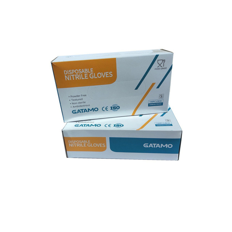 دستکش نیتریل خالص برند گاتامو GATAMOچین با کیفیت عالی دارای استاندارد اتحادیه اروپا CE و رده بندی فود گریدFOOD GRADE قابل استفاده در صنایع غذایی، دارویی، پزشکی، آزمایشگاهی و نوک انگشت آجدار برای جلوگیری از لغزش اشیا هنگام کار با دستکش،دارای کشسانی فوق العاده بدون پودر و بدون بو و حساسیت زایی،امکان استفاده از تاچ اسکرین ها با دستکش، غیر استریل و بافت مقاوم در برابر ترکیبات اسیدی و الکل
